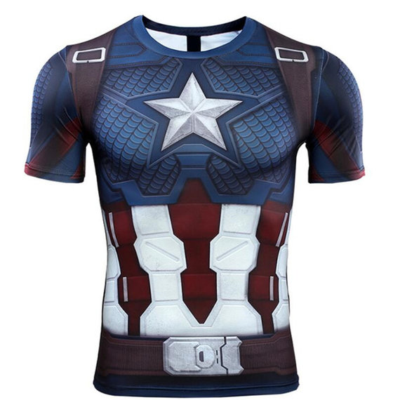 Captain America Endgame Shirt,dri fit short sleeve superhero compression shirt, You can be your own superhero too with the right quick dry gym shirt to help strengthen your body. Well, okay, we admit that you can’t necessarily obtain marvel superhero strength, but you can wear your favorite superhero exercise shirt to make your upper body workouts even more effective. Choose either short sleeves or long sleeves to wrap and support the sections of your arms and chest, pumping oxygen inside those vital organs. You may not be able to become a superhero, but you can certainly feel like one after you’re finished!