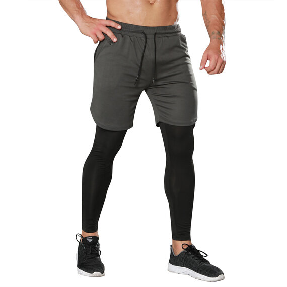 Men’s 2 in 1 Grey Gym Shorts Legging With Towel Loop
