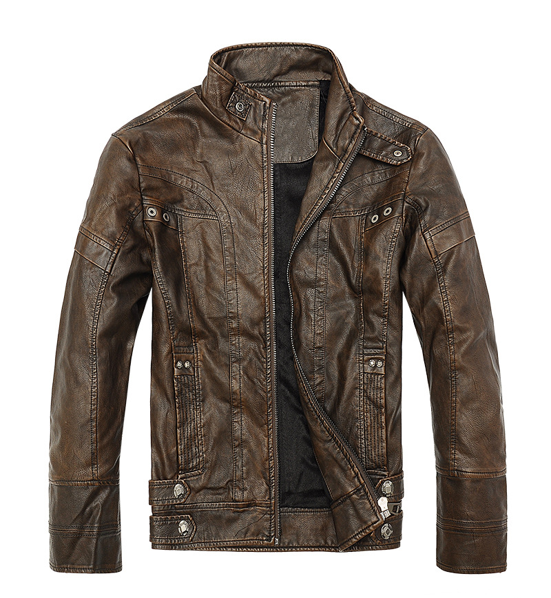 - Casual zip up slim bomber faux leather jacket vintage PU faux motocycle jacket faux fur coats military jacket for men