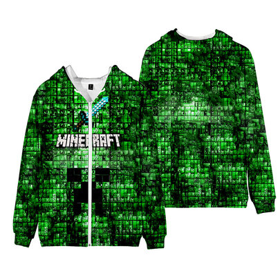 - DESIGNED FOR MINECRAFT VIDEO GAME FANS – Green hoodie with Creeper block pattern and full zip-up hoodie featuring a Creeper’s mouth and eyes (mesh construction for comfort); Includes woven Grass Block clamp label at hem and custom Minecraft zipper pull