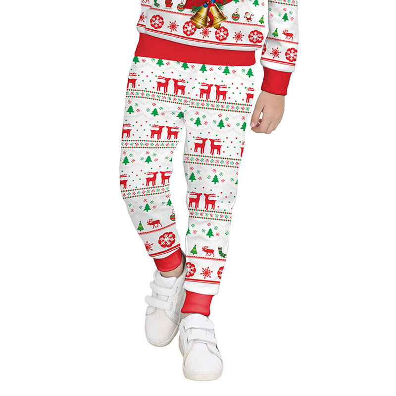 Reindeer Bell Print Christmas Hoodie Pant Set For Kids