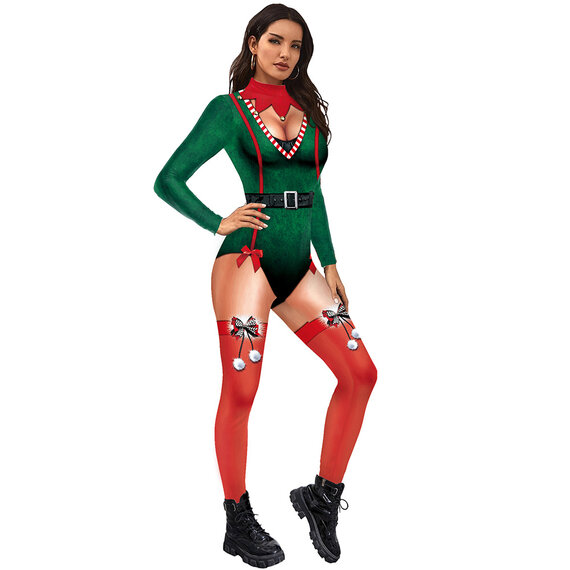Sexy Christmas Elf Zip-Up Jumpsuit Women